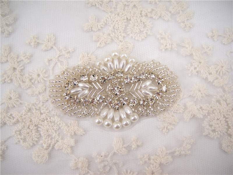 Rhinestone applique Garter Set Appliques Crystal Pearl patch 1 Pc