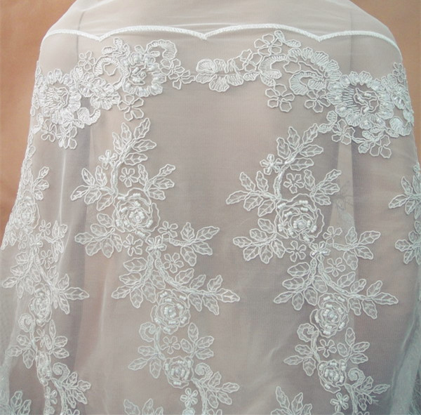 Lace Fabric Embroidered Lace Bridal Lace Scalloped Trim Mantilla