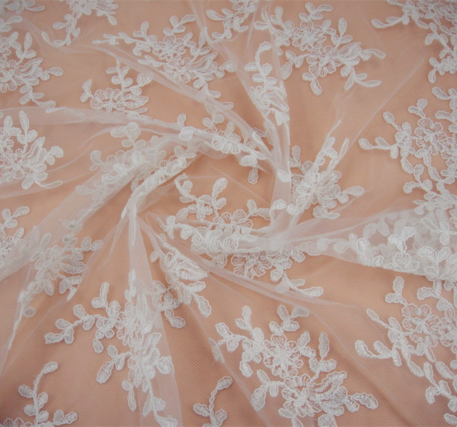 Off White Floral Wedding Lace Fabric, Wedding Gown Lace