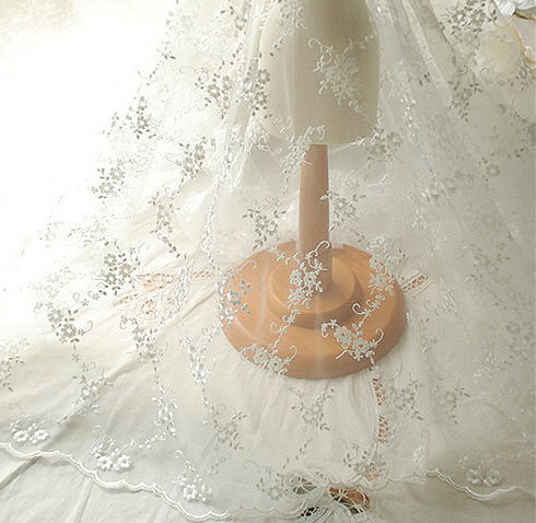 Ivory Embroidery Cotton Lace Fabric 47" Bridal Tulle Lace 1/2 Y