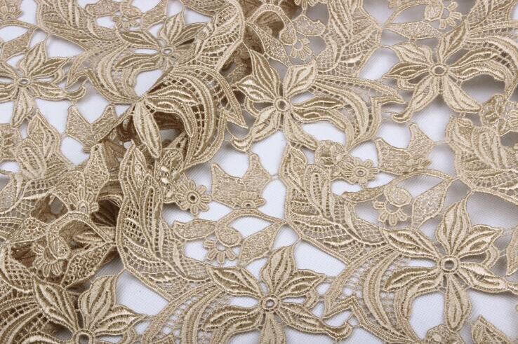 Embroidery Bridal Dress DIY Fabric Gold Corded Gown Lace Fabric