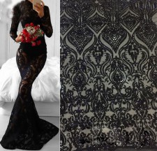 Bridal Dress Lace Fabric Black Wedding Evening Gown DIY