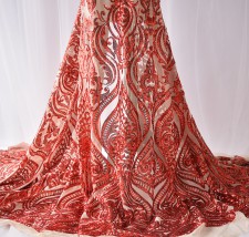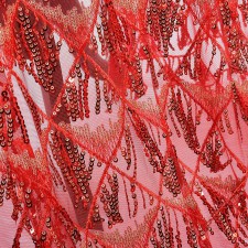 Red Embroidery Bridal Lace Fabric Sequins Wedding Dress Fabric