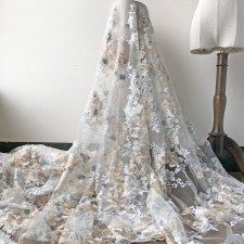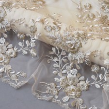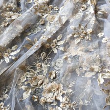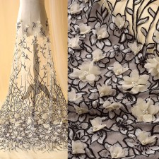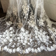 3D Flower Beaded Bridal Wedding Embroidery Lace Fabric