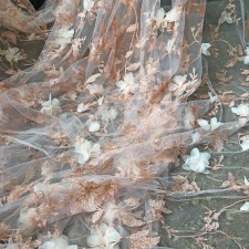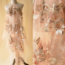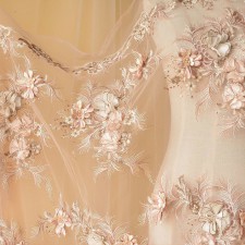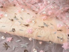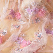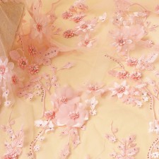 Peach 59" Width 3D Flower Embroidery Fabric DIY Wedding Dress