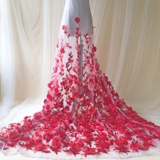 Red 59" Width 3D Flower Embroidery Fabric DIY Wedding Dress
