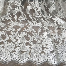 Ivory Sequin Bridal Tulle Lace Fabric Beaded Wedding Lace Fabric