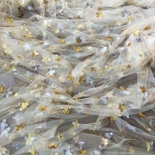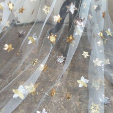 Star Sequin Embroidery Tulle Lace Fabric DIY Wedding Full Dress