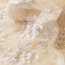 Embroidery Beaded Lace Fabric Ivory Wedding Dress Tulle Fabric 0.5 Y