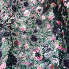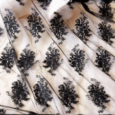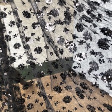 Black Sequins Floral Embroidery Tulle Lace Fabric Mesh 0.5 Yard