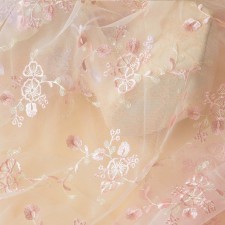 Peach Blossom Wedding Lace Fabric Embroidery Bridal Dress