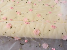 3D Flower Tulle Lace Fabric Pink Mesh Gauze DIY Wedding Dress