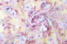 3D Chiffon Floral Beaded Lace Fabric, Wedding Lace Fabric