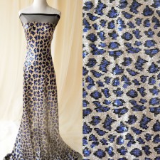 Multicolor Embroidered Leopard Print Sequin Lace Fabric