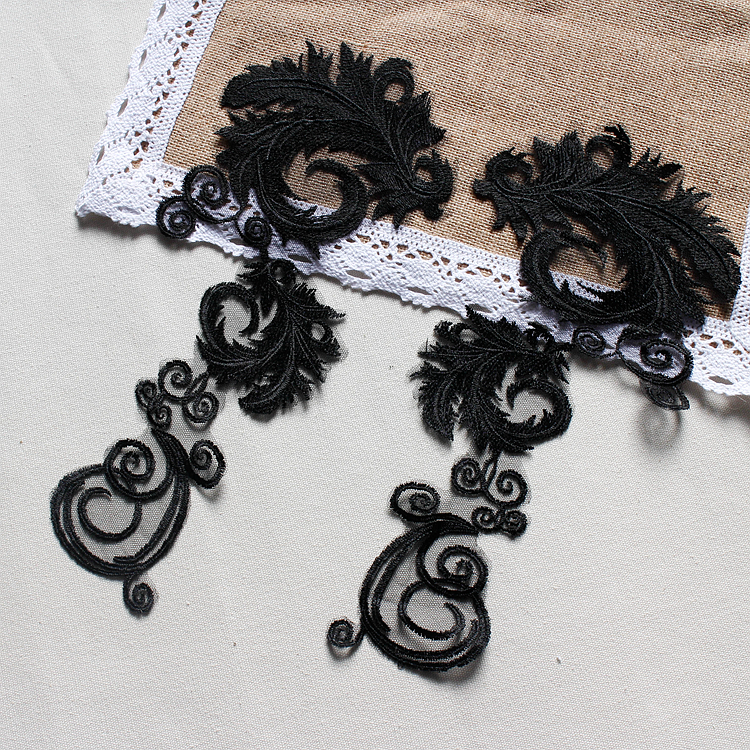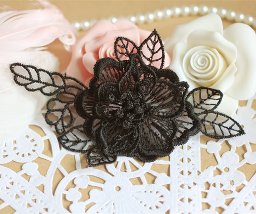 Floral Lace Applique Embroidery,3D Black Lace Applique