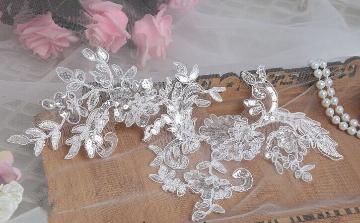 Sequin Lace Applique Corded Wedding Motif Lace Applique Trim
