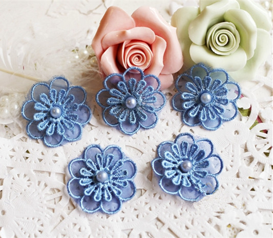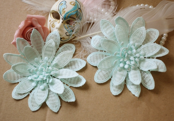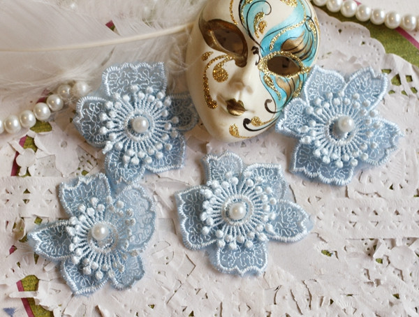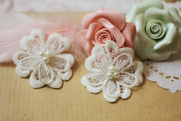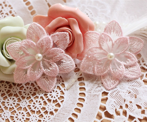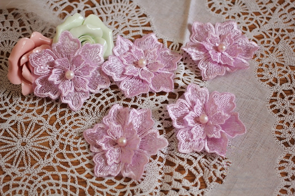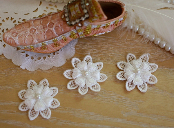 Applique, Embroidery Lace Flowers, 3D Lace Flower with Pearl Details