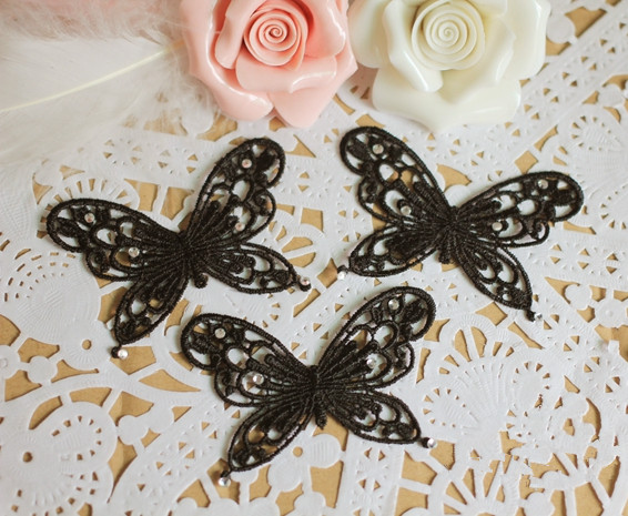 Bridal Lace Applique Black Wedding Motif Floral Butterfly