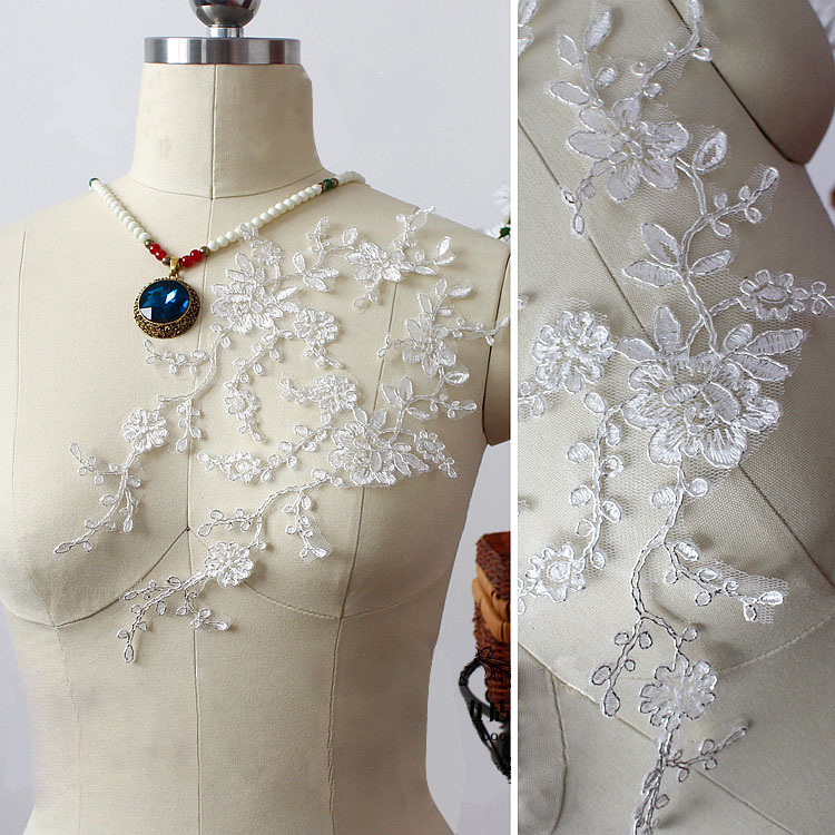 Lace Applique Wedding Accessories Trim Floral Embroidery Motif