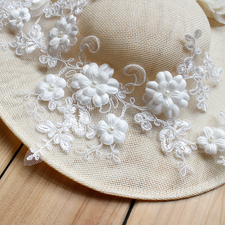 Embroidery Lace Flowers, 3D Lace Flower with Pearl Details Applique