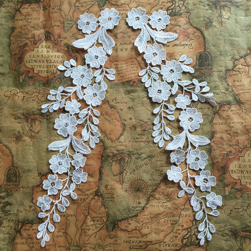 Guipure Trim Bridal Lace Applique Embroidery Wedding Motif 1 Pair