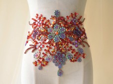 Rhinestone Applique Belt Colorful Stones Beaded Lace Patch