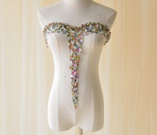 Colorful Rhinestones Wedding Dress Neckline Appliques Sew on Beading Patch