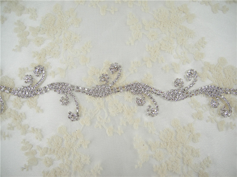 Stunning luxury wedding / bridal applique with high quality crystal rhinestones, ideal for making wedding sash belts, garters, bridal headpieces, decorating the wedding dress, cake decorating and any craft projects you need.