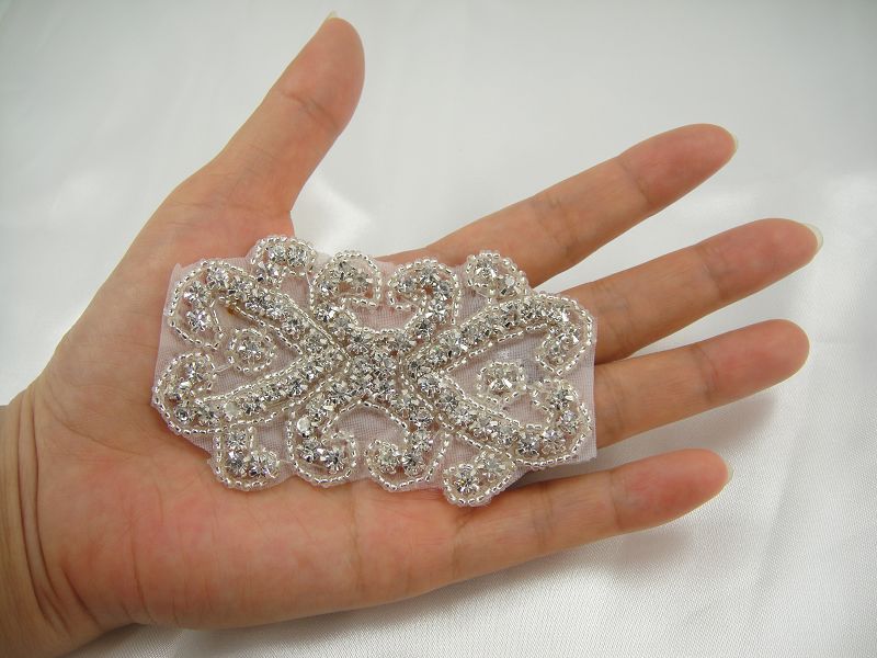 Stunning luxury wedding / bridal applique with high quality crystal rhinestones, beads, rhinestones and beads are all hand sewn .
