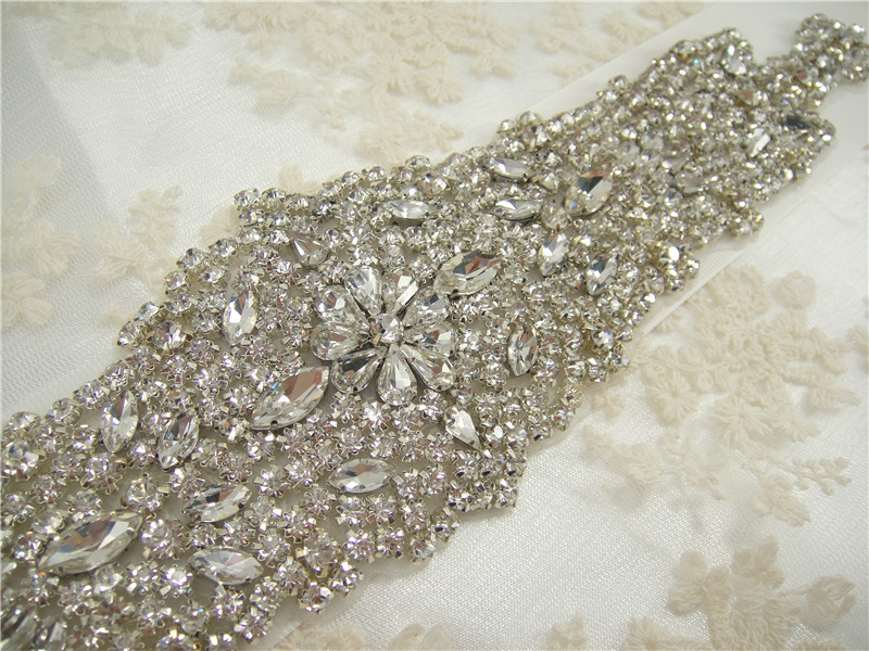 Stunning luxury wedding / bridal applique with high quality crystal rhinestones, beads, rhinestones and beads are all hand sewn .