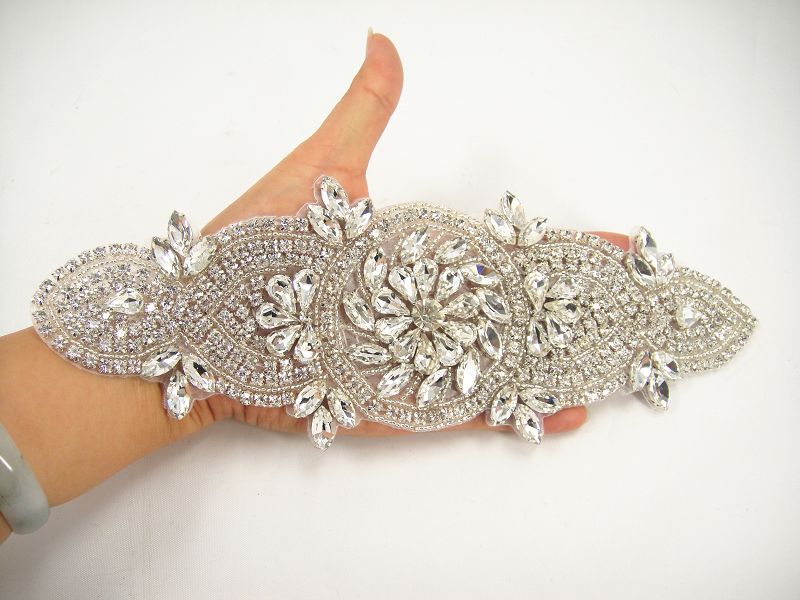 Stunning luxury wedding / bridal applique with high quality crystal rhinestones, beads, rhinestones and beads are all hand sewn .
