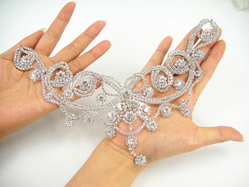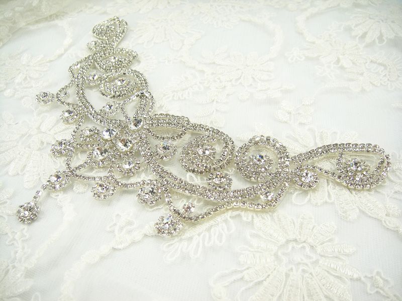 Stunning luxury wedding / bridal applique with high quality crystal rhinestones, beads, rhinestones and beads are all hand sewn .