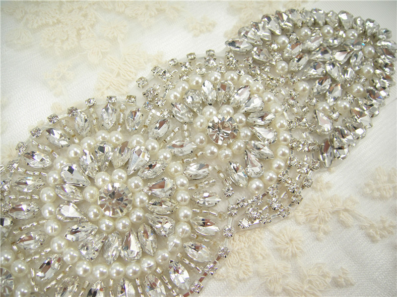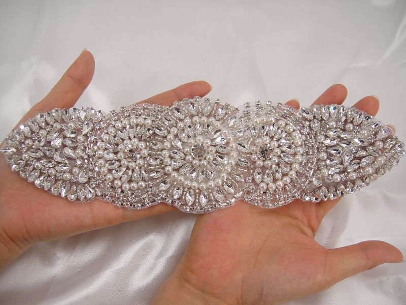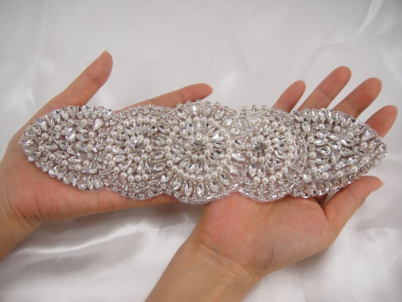 Stunning luxury wedding / bridal applique with high quality crystal rhinestones, beads, rhinestones and beads are all hand sewn .