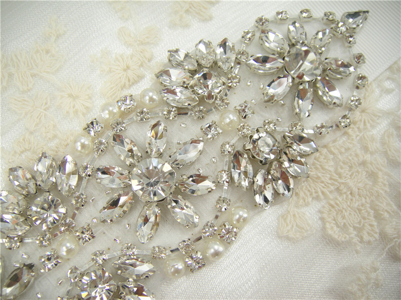 Stunning luxury wedding / bridal applique with high quality crystal rhinestones, beads, rhinestones and beads are all hand sewn .