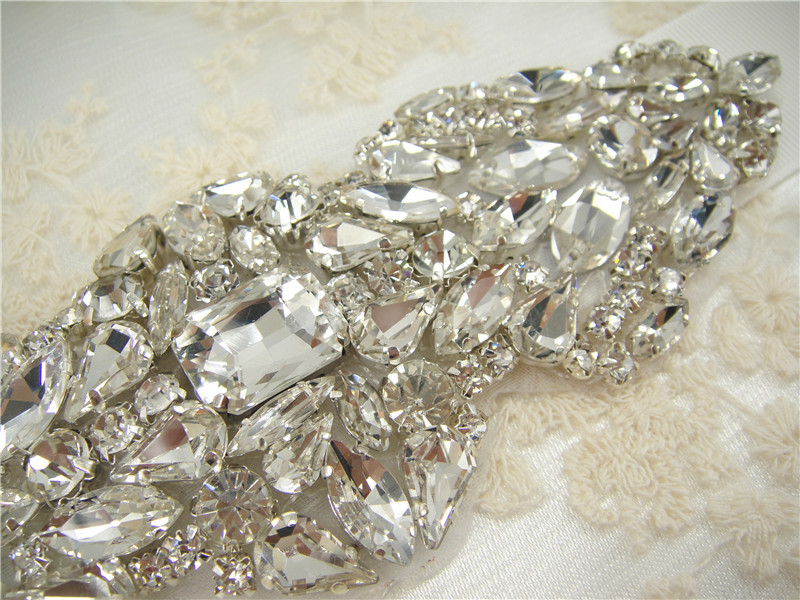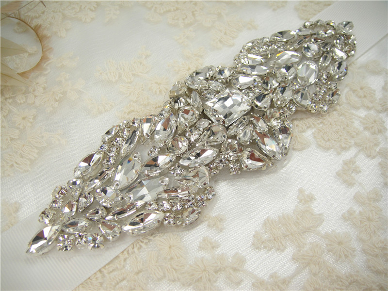 Stunning luxury wedding / bridal applique with high quality crystal rhinestones, beads, rhinestones and beads are all hand sewn .
