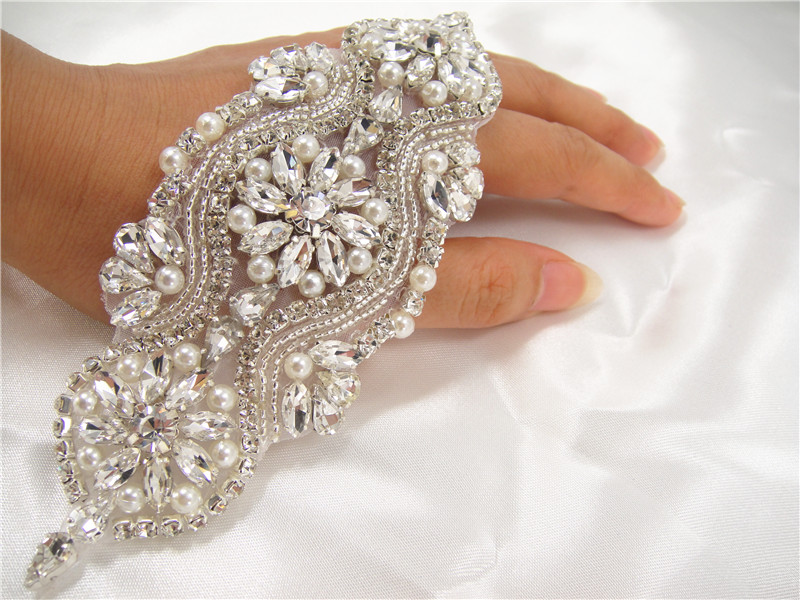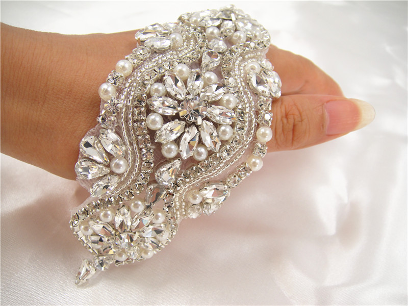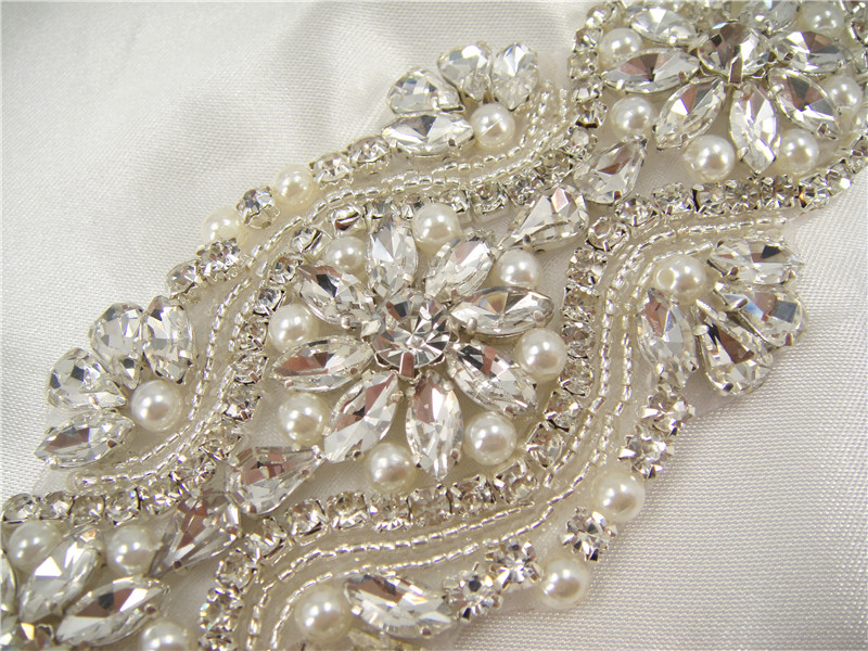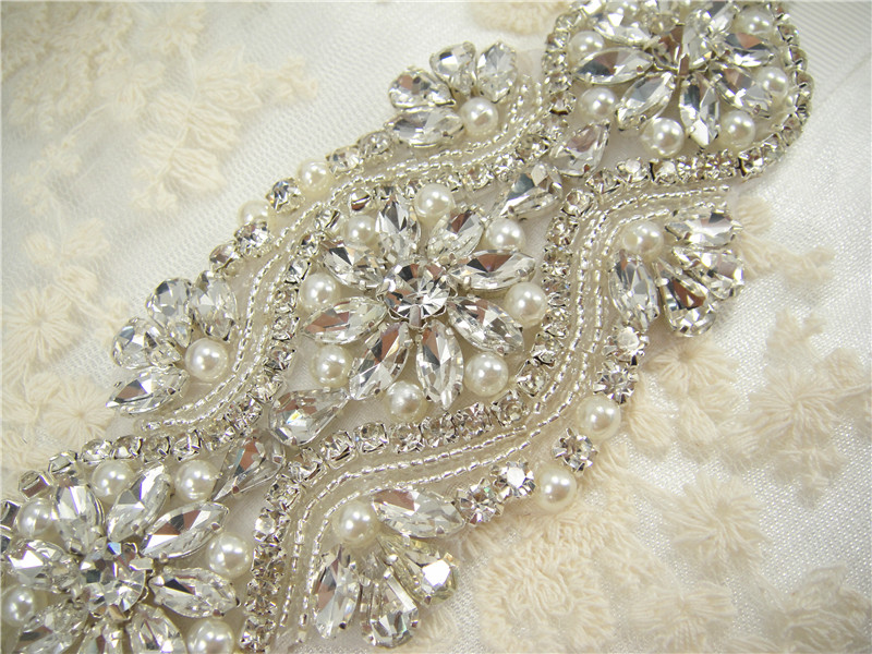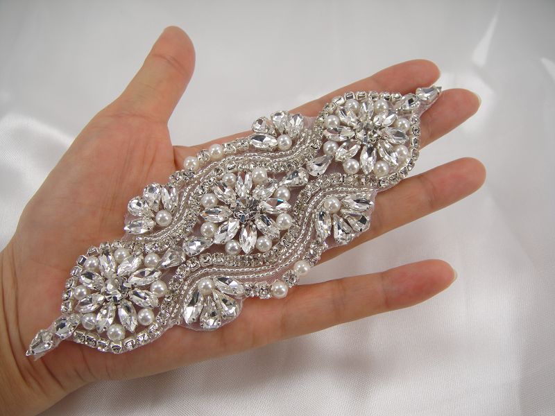 Stunning luxury wedding / bridal applique with high quality crystal rhinestones, beads, rhinestones and beads are all hand sewn .