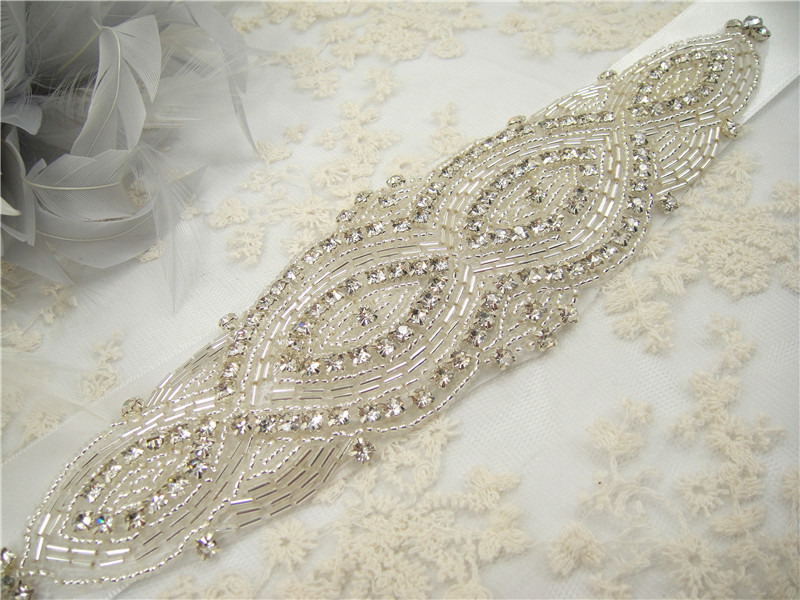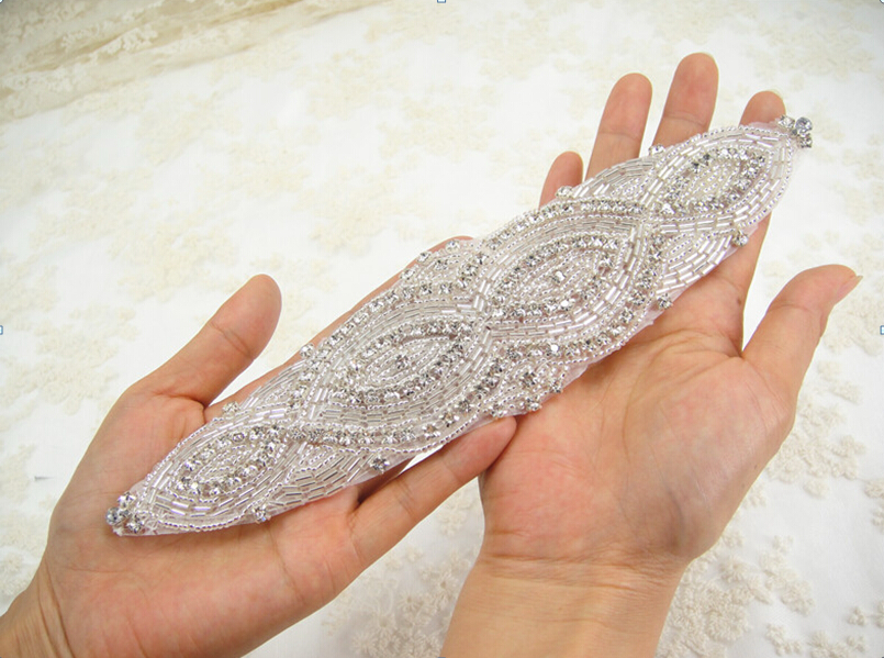 Stunning luxury wedding / bridal applique with high quality crystal rhinestones, beads, rhinestones and beads are all hand sewn .