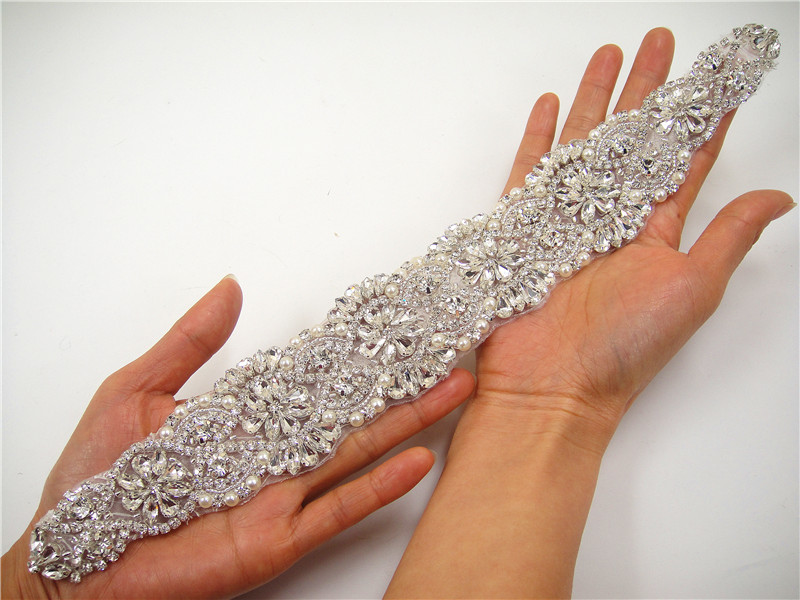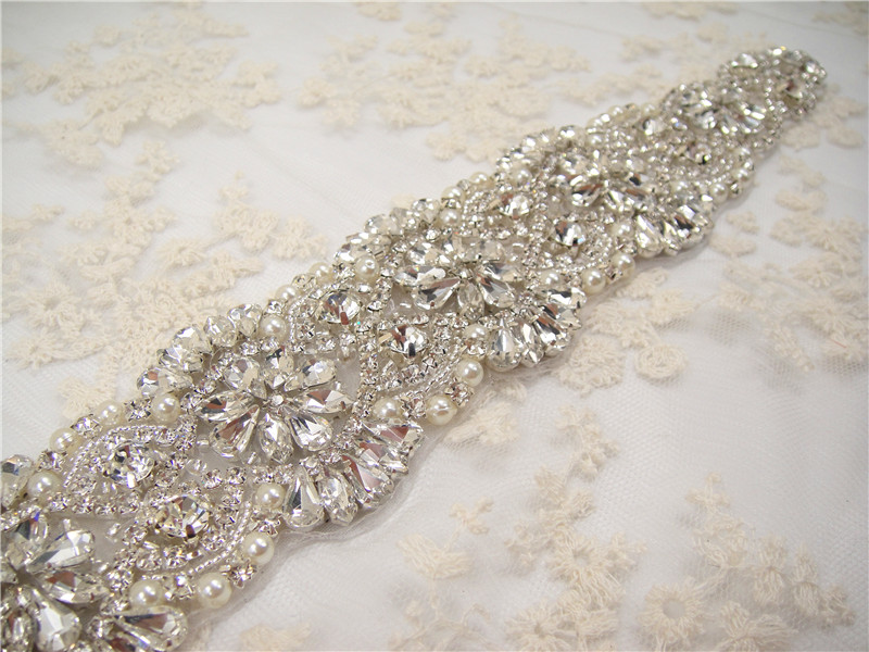 Stunning luxury wedding / bridal applique with high quality crystal rhinestones, beads, rhinestones and beads are all hand sewn .