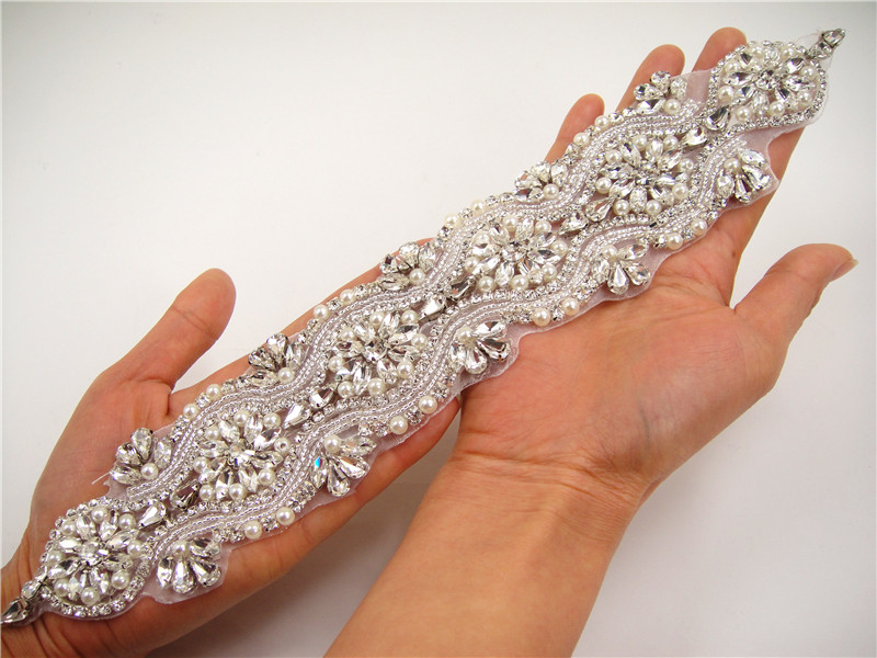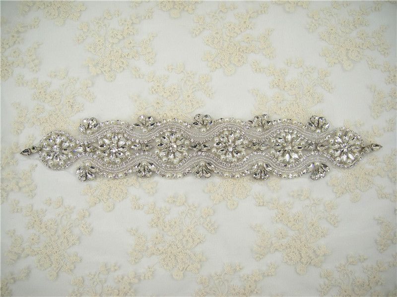 Stunning luxury wedding / bridal applique with high quality crystal rhinestones, beads, rhinestones and beads are all hand sewn .