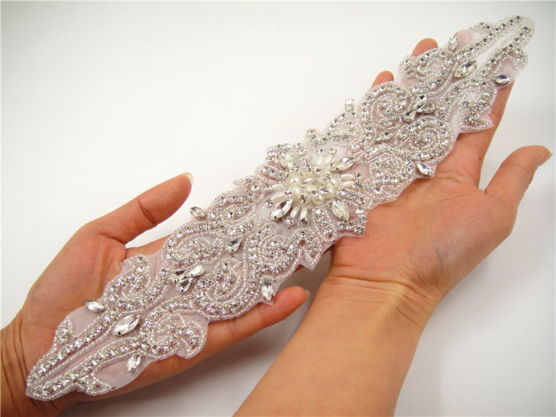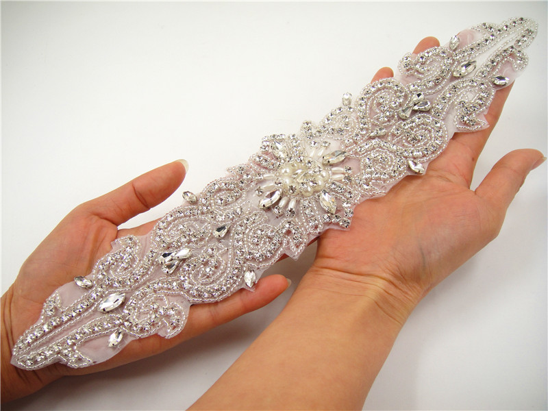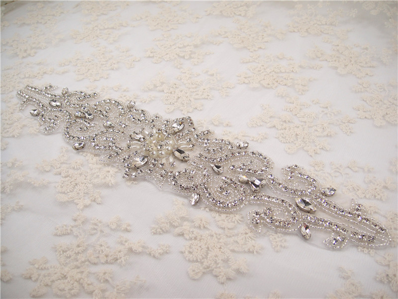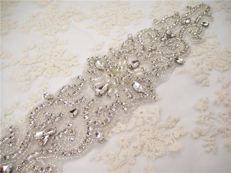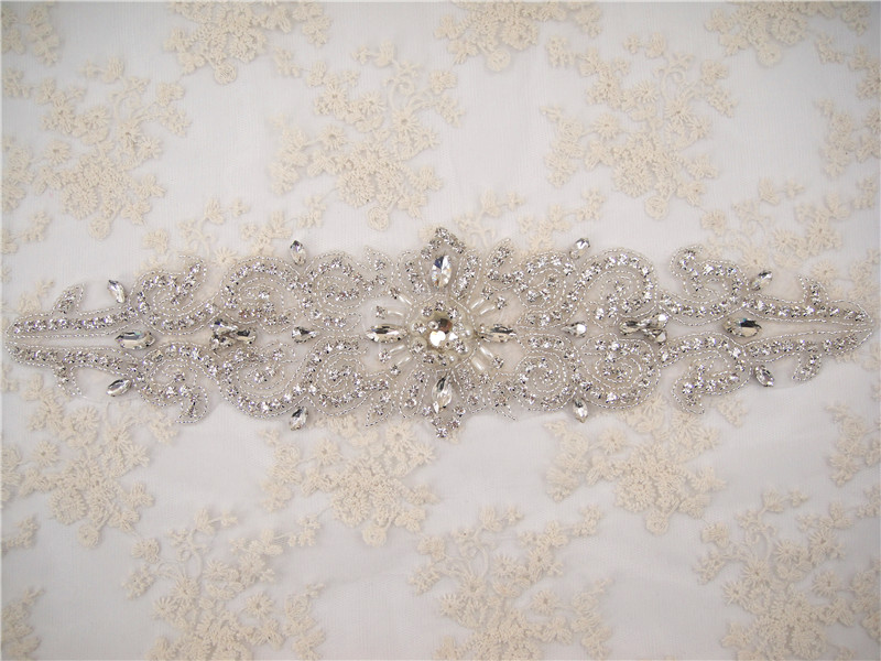 Stunning luxury wedding / bridal applique with high quality crystal rhinestones, beads, rhinestones and beads are all hand sewn .