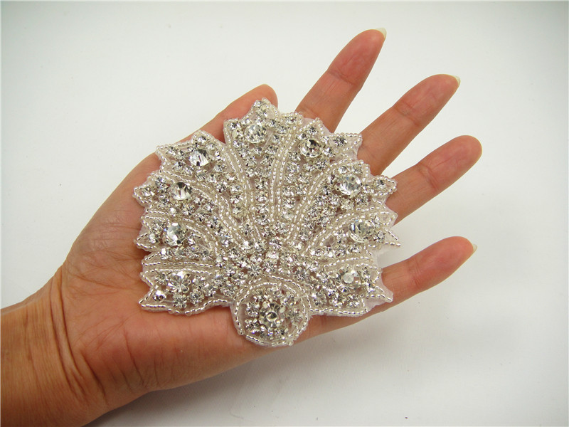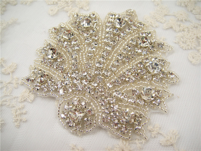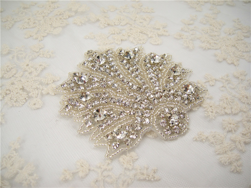 Stunning luxury wedding / bridal applique with high quality crystal rhinestones, beads, rhinestones and beads are all hand sewn .
