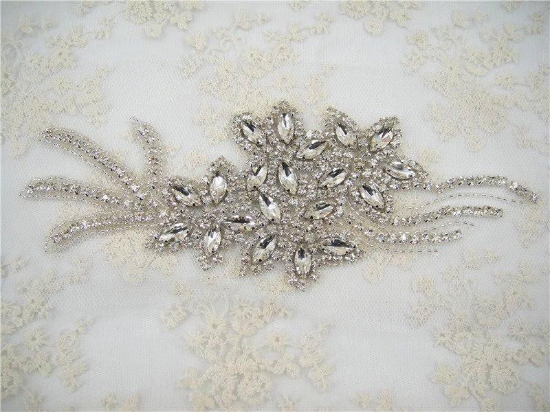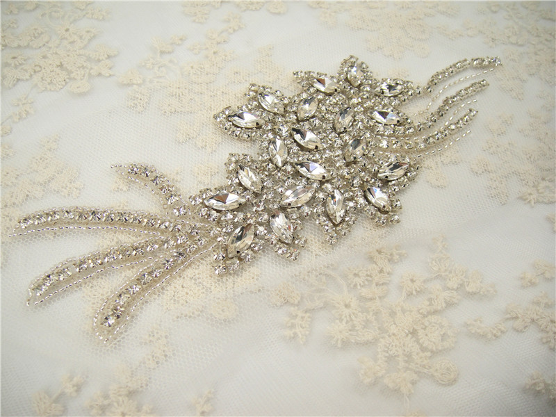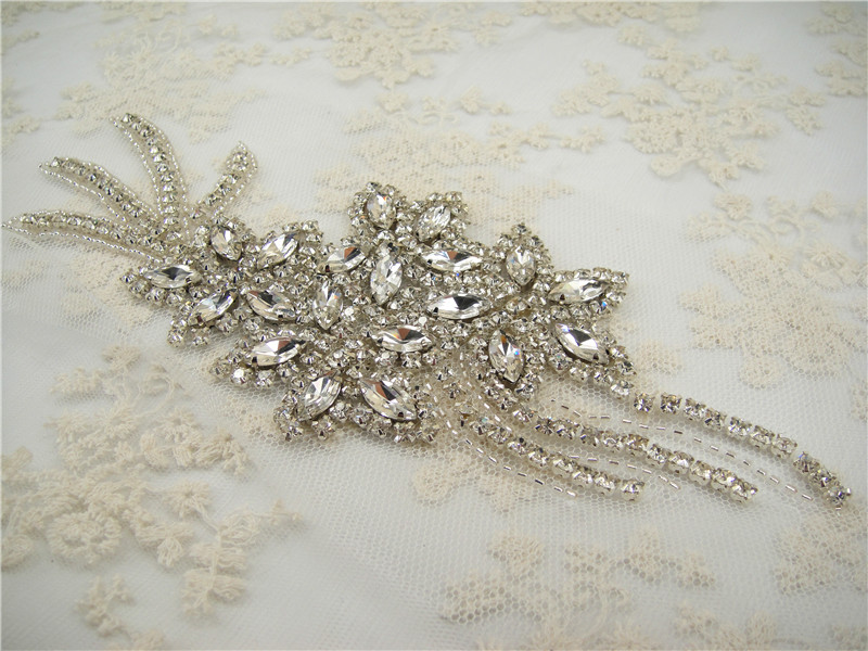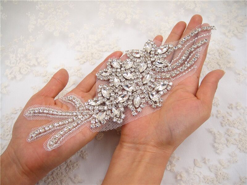 Stunning luxury wedding / bridal applique with high quality crystal rhinestones, beads, rhinestones and beads are all hand sewn .