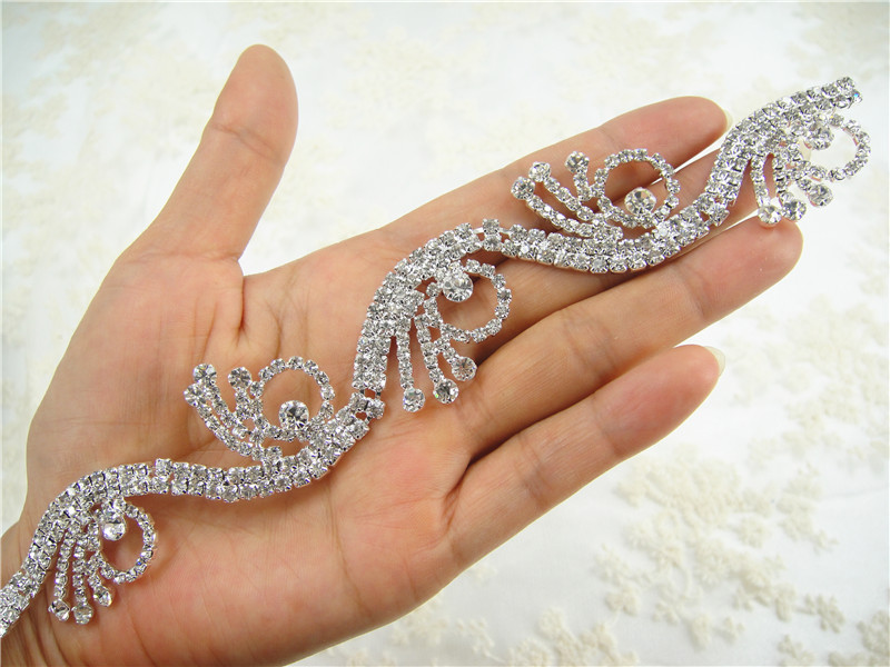 Stunning luxury wedding / bridal applique with high quality crystal rhinestones, ideal for making wedding sash belts, garters, bridal headpieces, decorating the wedding dress, cake decorating and any craft projects you need.