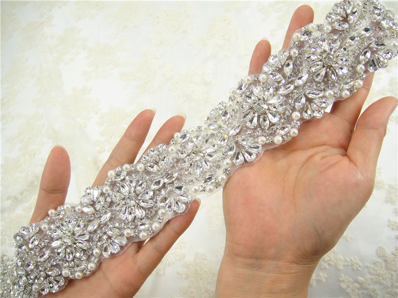 Stunning luxury wedding / bridal applique with high quality crystal rhinestones, ideal for making wedding sash belts, garters, bridal headpieces, decorating the wedding dress, cake decorating and any craft projects you need.