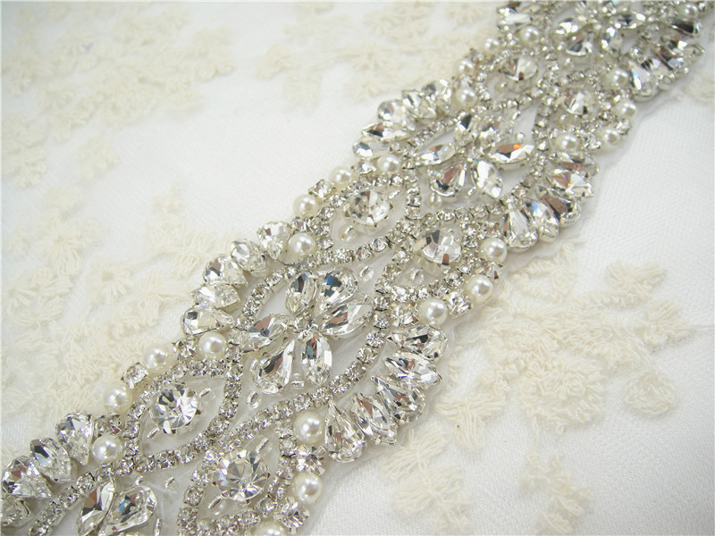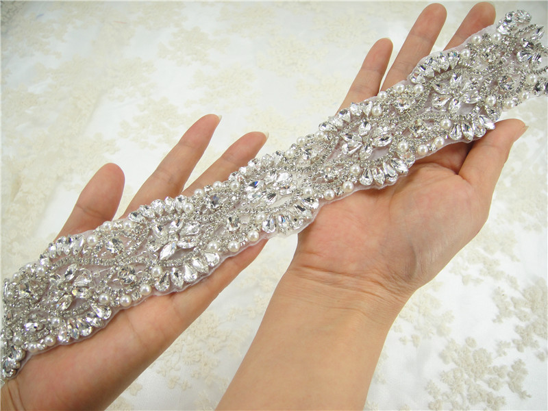 Stunning luxury wedding / bridal applique with high quality crystal rhinestones, ideal for making wedding sash belts, garters, bridal headpieces, decorating the wedding dress, cake decorating and any craft projects you need.