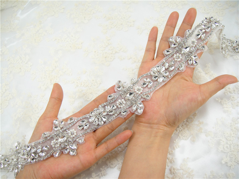 Stunning luxury wedding / bridal applique with high quality crystal rhinestones, ideal for making wedding sash belts, garters, bridal headpieces, decorating the wedding dress, cake decorating and any craft projects you need.