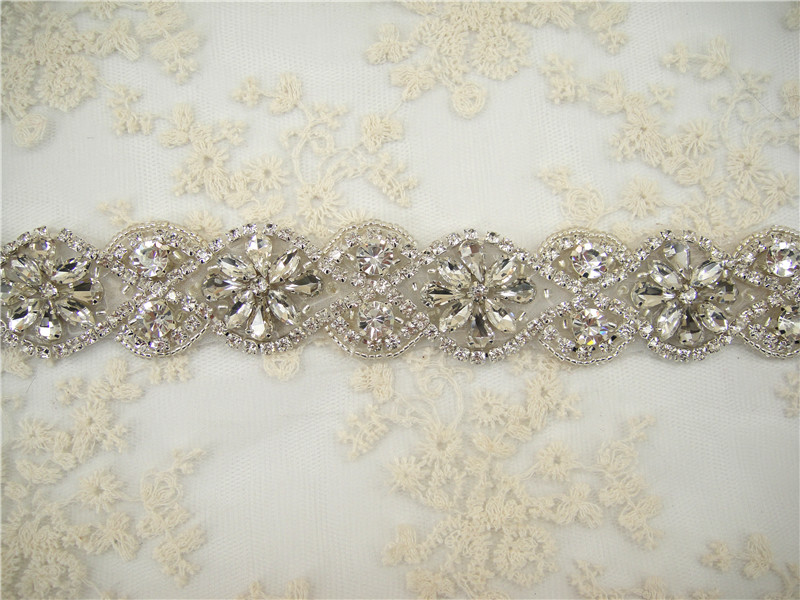 Stunning luxury wedding / bridal applique with high quality crystal rhinestones, ideal for making wedding sash belts, garters, bridal headpieces, decorating the wedding dress, cake decorating and any craft projects you need.