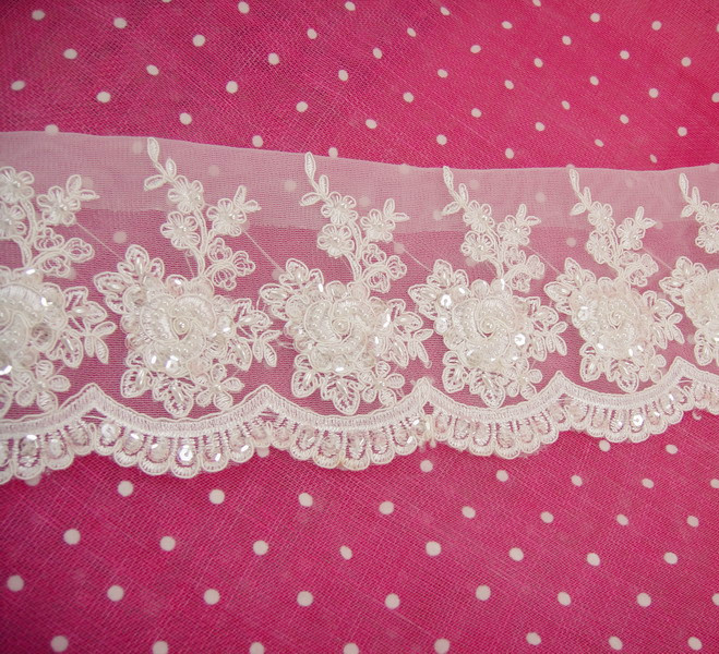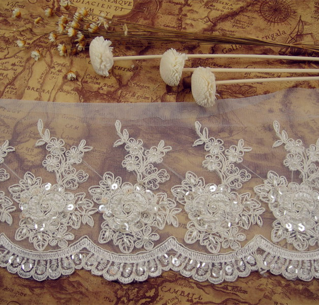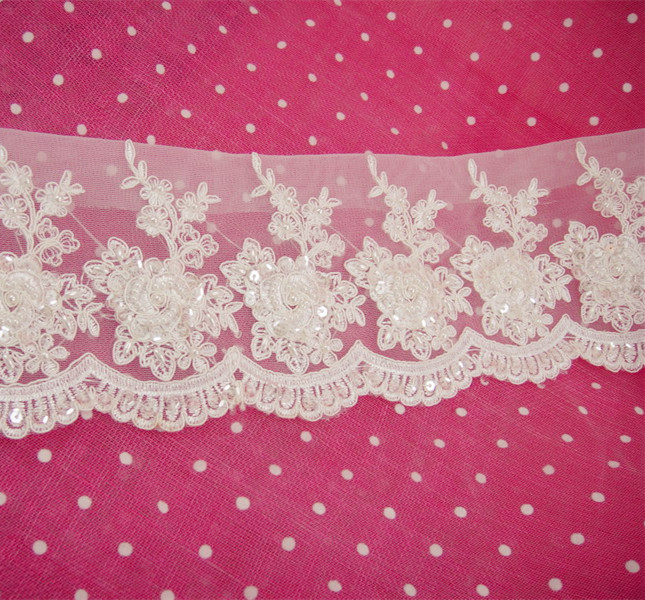 This gorgeous design lace trim has soft hand feel, very stunning and elegant .