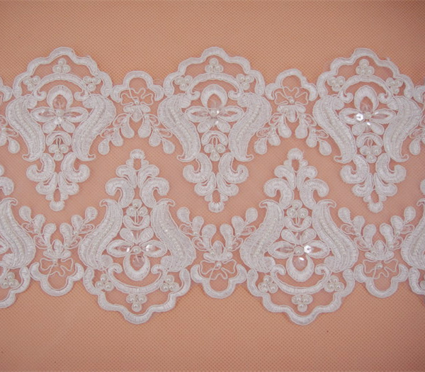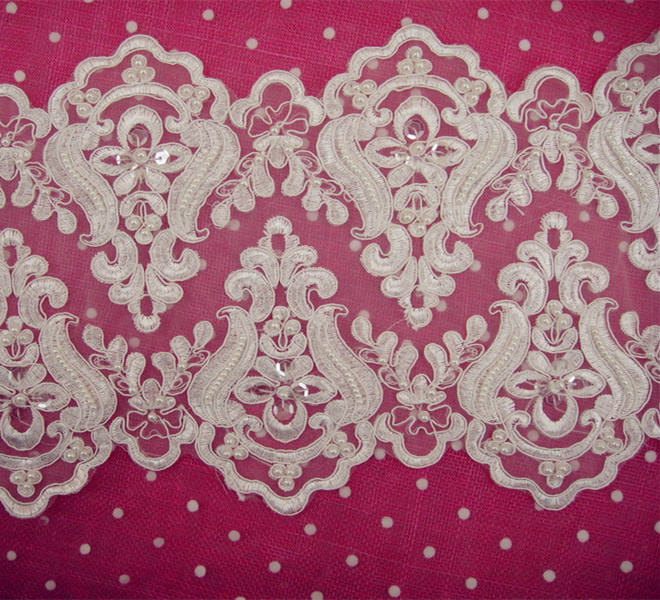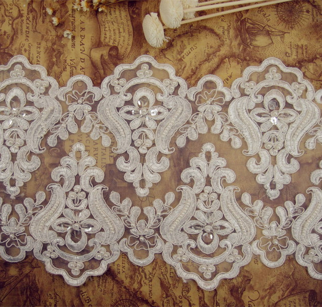 This gorgeous design lace trim has soft hand feel, very stunning and elegant .