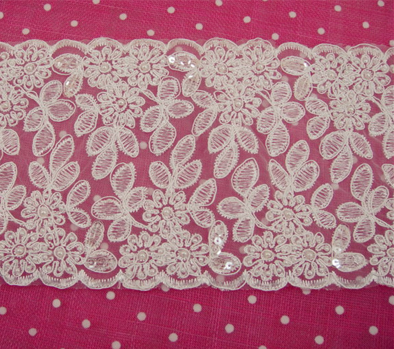 This gorgeous design lace trim has soft hand feel, very stunning and elegant .